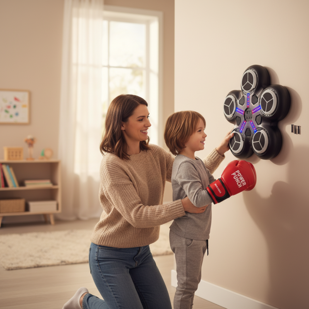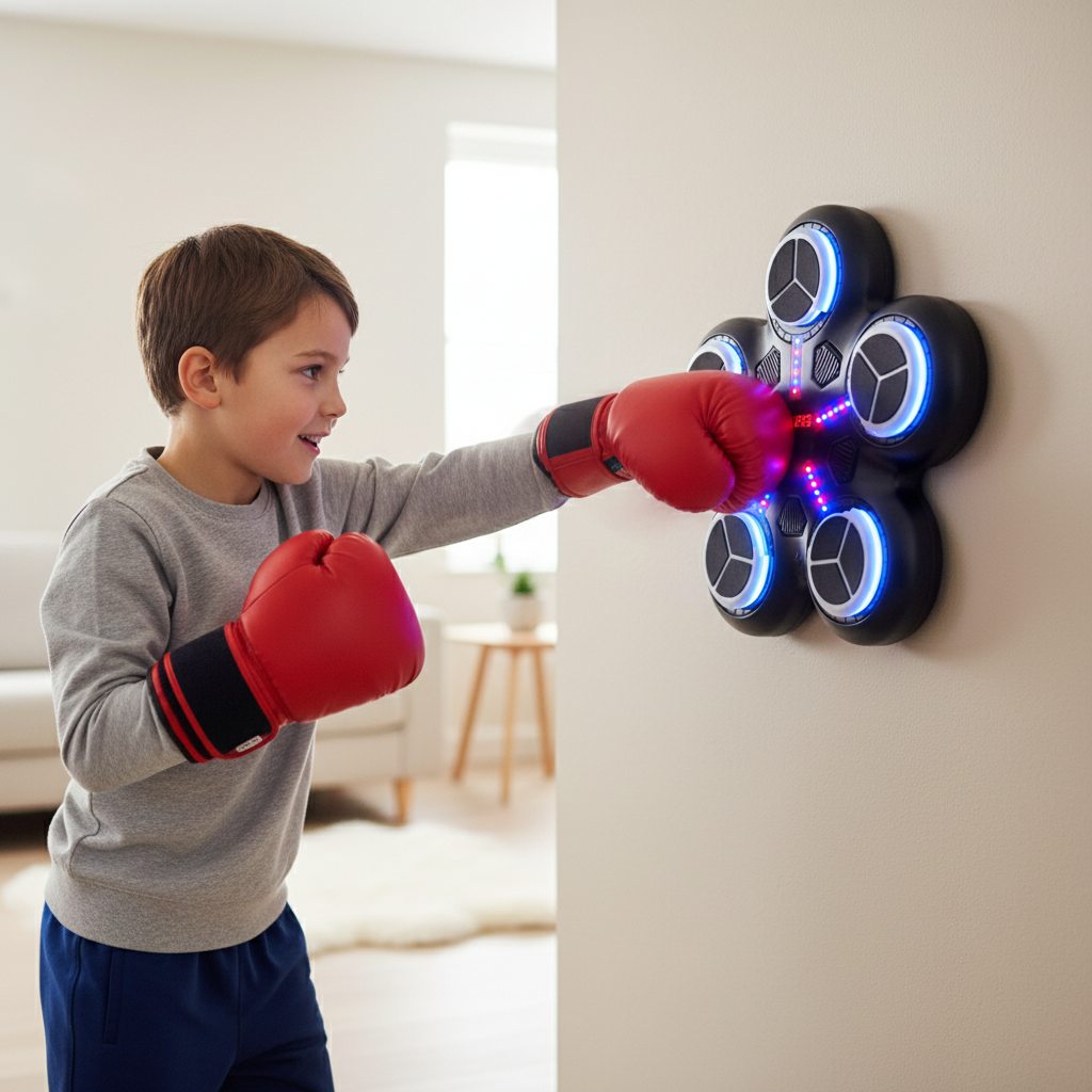 Less screen time, more movement! LED targets, music, and soft pads – a safe and fun arcade workout at home.